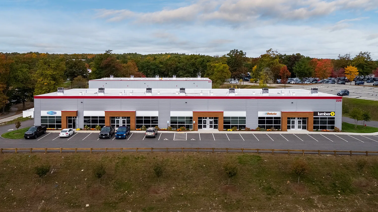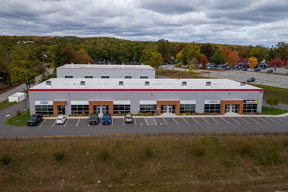 The Architects designed a project consisting of three flex buildings: two with five 2,400 sf units and one with seven 2,400 sf units. Each unit features a front sheltered entry serving the public, along with a loading dock and egress door at the rear. The buildings are steel-framed and clad insulated metal panels, with projecting wood look entry forms. Large glass areas and prominent urban entries combined with the metal siding to create a functional and distinctive modern industrial aesthetic.