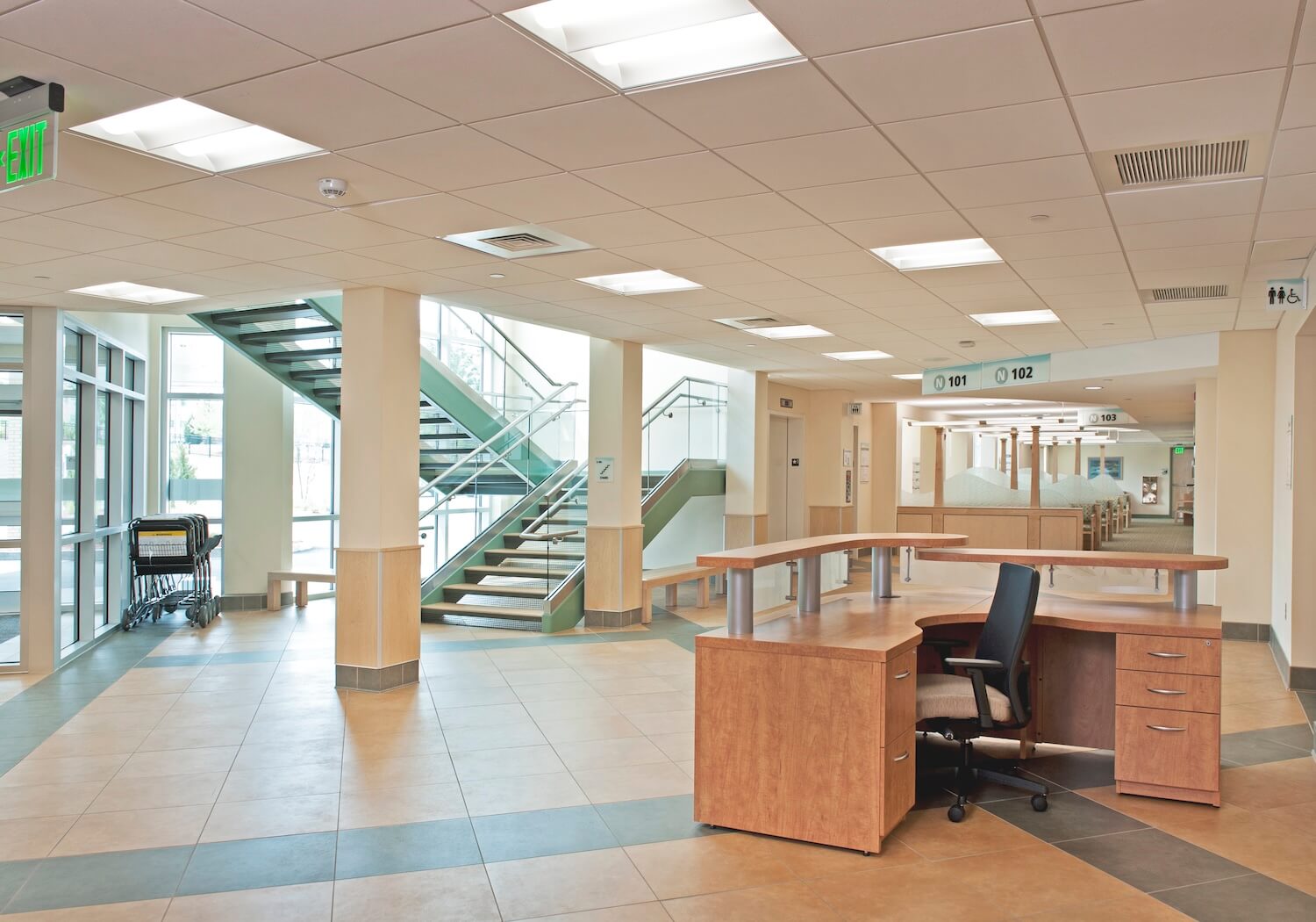 Dennis Mires PA The Architects is pleased to announce the completion of Southern New Hampshire Health System’s 17 Prospect Street complex. The Architects worked with the Owner to develop a 55,000 sf medical office building in the former YMCA building in downtown Nashua, NH, adjacent to the Southern NH Medical Center campus. The original building required selective demolition and extensive renovation to prepare for the new medical programs; including new floor systems in the high volumes of the two existing gymnasiums and natatorium. A complete restoration of the building’s envelope was undertaken with closed cell foam, brick veneer, and composite aluminum panels. The first floor provides for flexible medical and future community meeting space, a small cafe, Primary Care practice, Phlebotomy services, and Physical Therapy. The second floor provides an X-ray suite, Orthopedic practice, Sports Medicine, Spine & Brain Center, Rheumatology, and Foot and Ankle Medicine/Surgery. Expansion space on the first and third floors provide approximately 12,200 sf of undesignated space for future growth. The Construction Manager for the project was Fulcrum Associates, Amherst NH with an integrated design integrated development team approach used to provide the best possible project for the Owner with energy efficient and sustainable practices highlighted in tandem with aggressive budgeting.